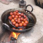 We quickly remove the bhindi heads from our faces before the situation escalates to a mom appearance! The bhindi heads are slimy, so a swift wipe with the edge of our frocks (dress) takes care of that mess, and we rush to cajole our sister.